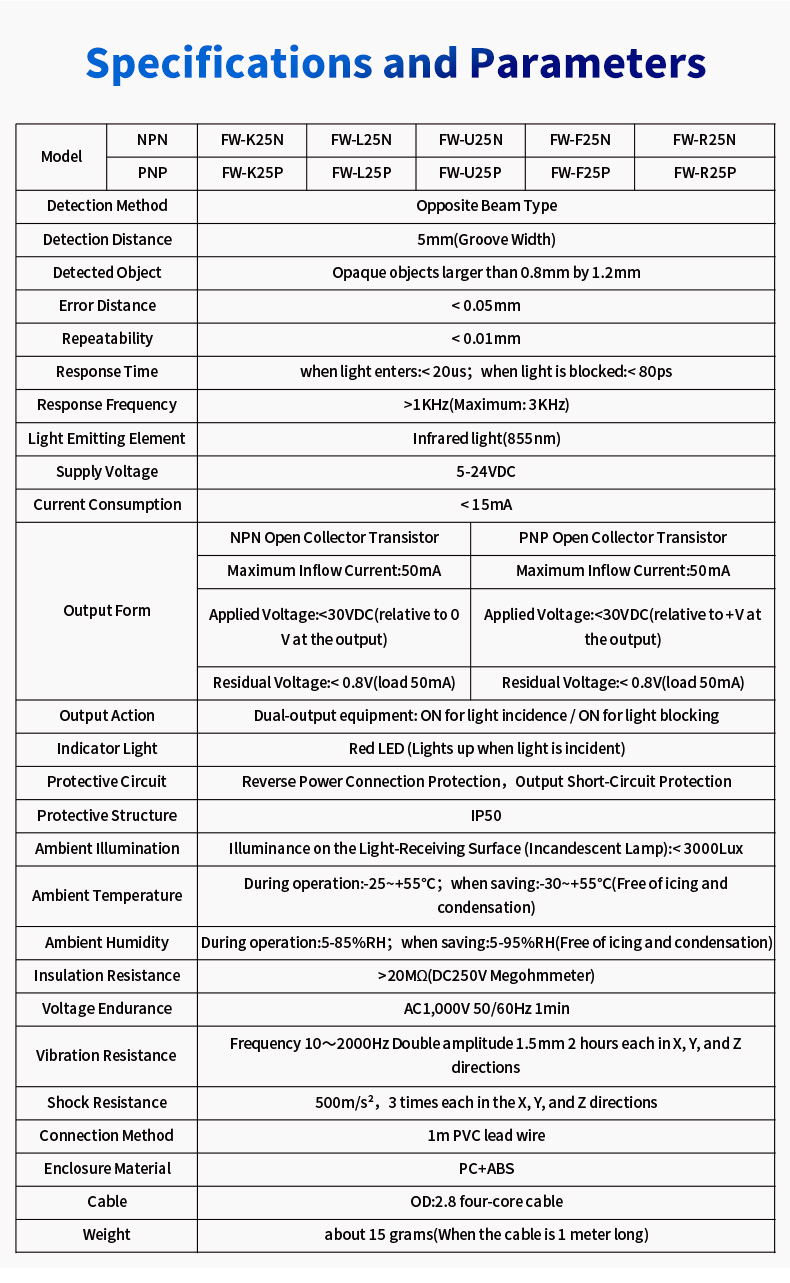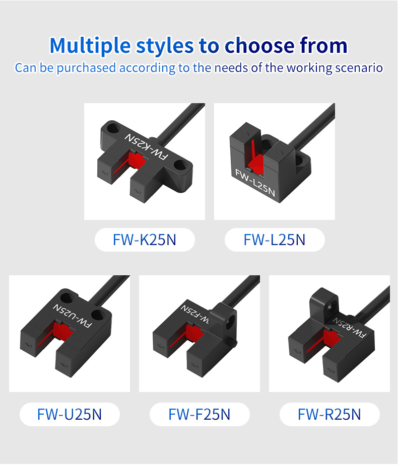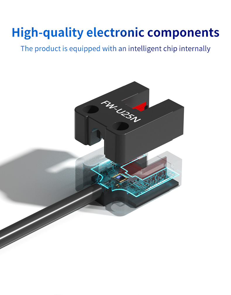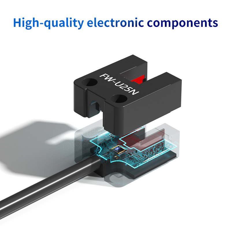 Cốt lõi của Dòng FW25 là chiều rộng rãnh 5mm được thiết kế chính xác. Thiết kế nhỏ gọn nhưng hiệu quả này cho phép phát hiện các vật thể rất nhỏ, cờ mỏng hoặc tab truyền động đi qua khe. Nguyên lý cảm biến xuyên chùm tia trong rãnh đảm bảo khả năng miễn nhiễm cao với ánh sáng xung quanh và độ phản xạ bề mặt, mang lại tín hiệu ổn định và đáng tin cậy ngay cả trong những điều kiện khó khăn. Điều này làm cho nó trở nên hoàn hảo cho các ứng dụng yêu cầu độ chính xác về vị trí, chẳng hạn như phát hiện gốc tọa độ trong dẫn hướng tuyến tính hoặc đếm răng trên một bánh răng nhỏ.