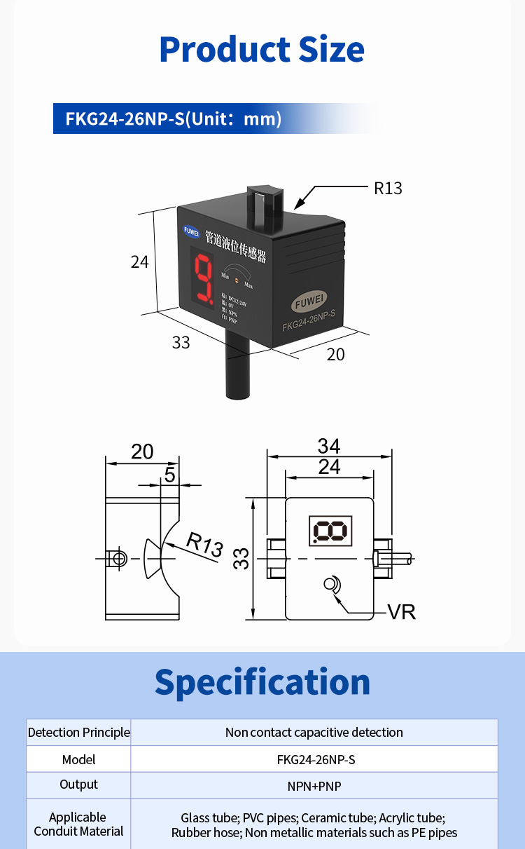 Sê-ri FKG24-26NP Nguyên tắc điện dung cảm biến cấp chất lỏng, không dễ bị ảnh hưởng bởi vật liệu ống