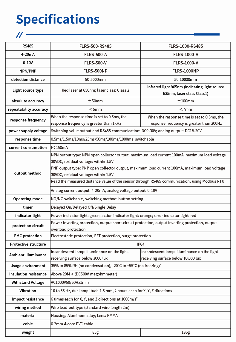 Được xây dựng với khả năng bảo vệ nhiều lớp—bao gồm tĩnh điện, EFT và bảo vệ đột biến—Dòng FLRS bảo vệ thiết bị của bạn và tăng cường an toàn vận hành. Thiết kế đo lường và điều khiển tích hợp, nhỏ gọn của nó giúp giảm thiểu yêu cầu về không gian và giảm độ phức tạp của hệ thống dây điện, mang lại cả hiệu quả lẫn sự dễ dàng lắp đặt. Chọn từ các mẫu như FLRS-1000-RS485 (50–10.000 mm) hoặc FLRS-500-RS485 (50–5.000 mm) để phù hợp với yêu cầu phạm vi cụ thể của bạn.