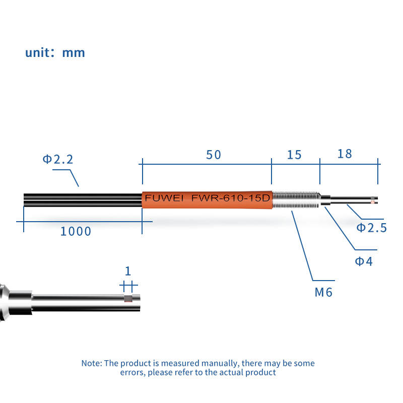 Cảm biến sợi quang FUWEI FWR-610-15D R25 M6 Khả năng chống uốn Phản xạ khuếch tán Lửa vào nhau