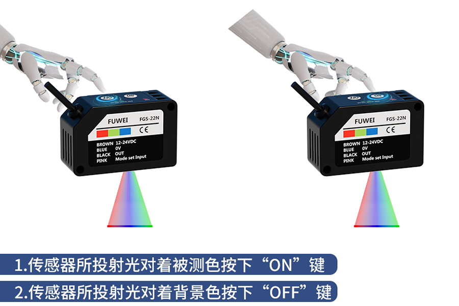 Chế độ màu có độ chính xác cao: Chuyển sang chế độ này khi bạn yêu cầu sự khác biệt cực kỳ rõ ràng về sự khác biệt màu sắc. FGS-22 đồng thời chiếu sáng các đèn LED màu cơ bản R (Đỏ), G (Xanh lục) và B (Xanh lam). Nó xác định màu sắc bằng cách phân tích tỷ lệ chính xác của màu sắc RGB trong ánh sáng phản chiếu từ vật thể. Công nghệ cảm biến màu tiên tiến này khắc phục hiệu quả hiện tượng nhiễu ánh sáng xung quanh và các biến đổi về kết cấu bề mặt, đạt được khả năng nhận dạng có độ tin cậy cao đối với các màu phức tạp. Nó lý tưởng cho các ứng dụng có độ chính xác cao như phân loại chất lượng sản phẩm và kiểm tra sự khác biệt về màu sơn.