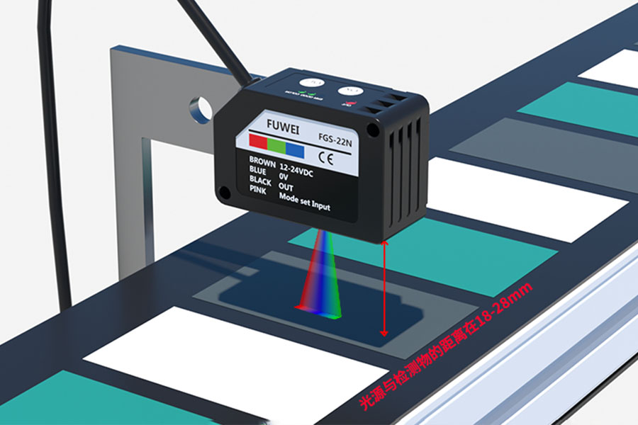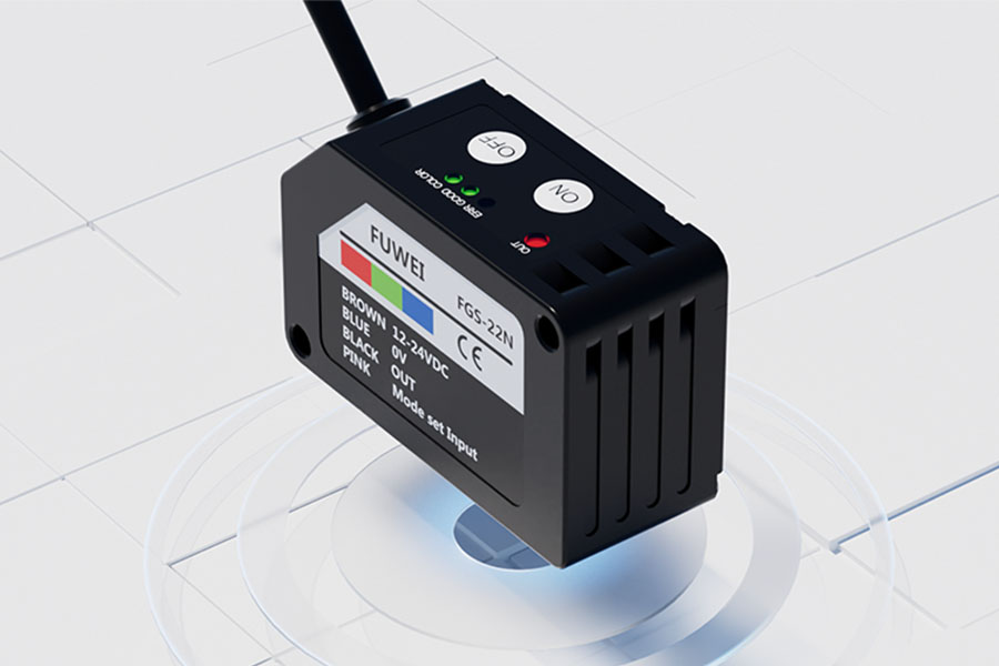 Cảm biến đánh dấu màu dòng FGS-22N của Fuwei Electronics có các nguồn sáng LED màu đỏ, xanh lục và xanh lam độc lập tích hợp. Nó tự động chọn tổ hợp đèn LED tối ưu dựa trên đặc điểm bề mặt của đối tượng mục tiêu.