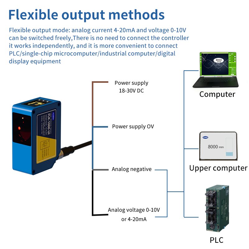 Trong các ứng dụng thực tế, cảm biến khoảng cách laser FLR-1000-UI hoạt động đặc biệt tốt. Trong phép đo đường kính cuộn, nó theo dõi chính xác các thay đổi trong đường kính cuộn; Trong phép đo khoảng cách tấm cao su, dữ liệu chính xác và không có lỗi; Và trong các kịch bản như định vị chiều cao và phát hiện cấp độ vật chất, nó hoạt động một cách đáng tin cậy, cung cấp hỗ trợ mạnh mẽ cho tự động hóa và thông minh sản xuất công nghiệp.