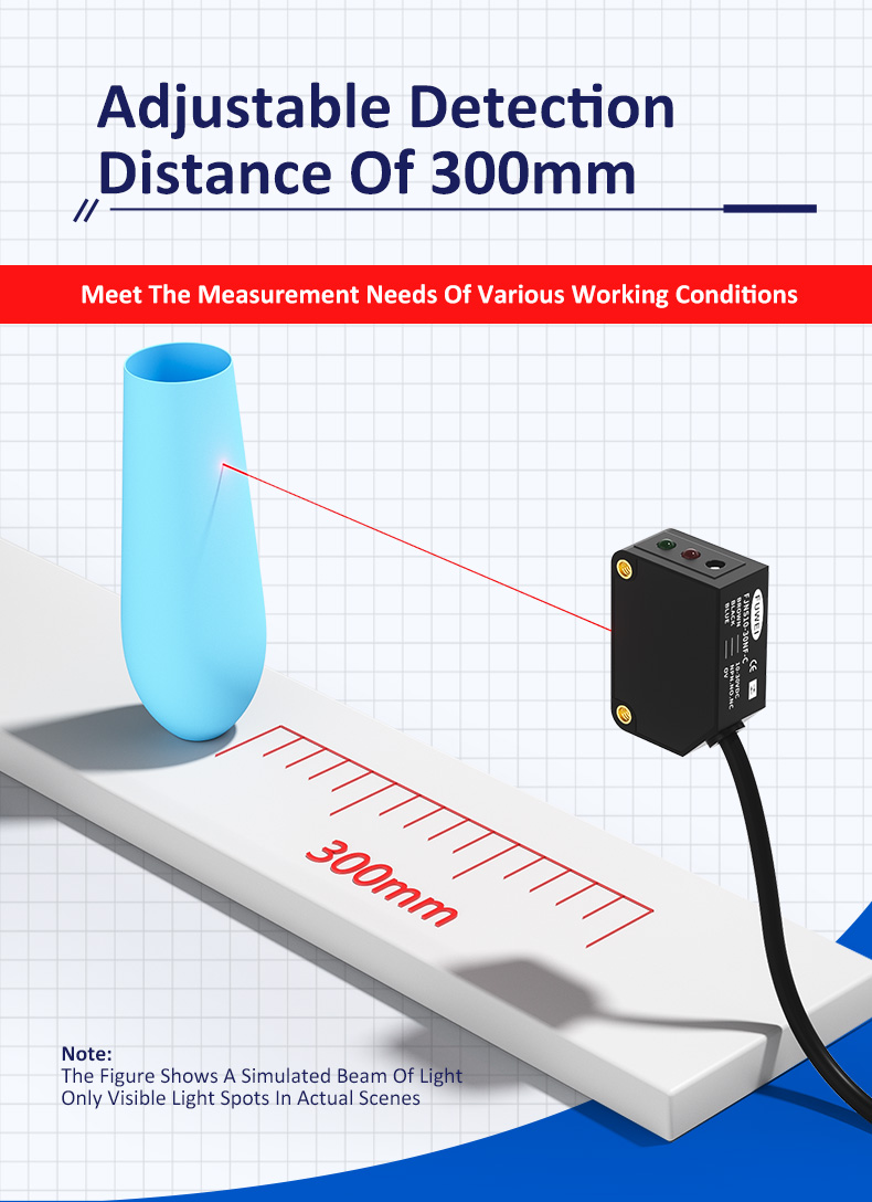 Trong lĩnh vực tự động hóa công nghiệp, phát hiện chính xác là một liên kết chính trong việc đảm bảo hiệu quả và chất lượng sản xuất.Sê-ri FJNS10-30của các cảm biến laser phản xạ khuếch tán, với hiệu suất vượt trội của chúng, đã trở thành một lựa chọn lý tưởng cho các kịch bản phát hiện chính xác khác nhau. Ưu điểm nổi bật nhất của loạt bài này là khoảng cách phát hiện có thể điều chỉnh 300mm của nó, có thể thích ứng với nhu cầu đo lường của các điều kiện làm việc khác nhau. Cho dù đó là phát hiện tốt trong phạm vi gần hoặc sàng lọc lô trung bình, nó có thể dễ dàng xử lý chúng, cung cấp giải pháp một cửa cho các nhiệm vụ phát hiện đa dạng của các dây chuyền sản xuất.