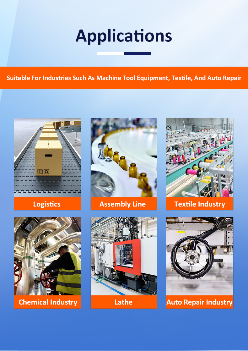 Tính linh hoạt của Cảm biến tiệm cận vuông dòng FSNS18-10 khiến nó trở thành lựa chọn lý tưởng cho nhiều lĩnh vực công nghiệp. Chức năng chính của nó là phát hiện kim loại đi qua, với các ứng dụng cụ thể bao gồm nhưng không giới hạn ở: Thiết bị máy công cụ & Máy tiện CNC: Được sử dụng để phát hiện độ mòn của dụng cụ, định vị vị trí ổ chứa dụng cụ và định vị giới hạn bàn làm việc, đảm bảo an toàn và chính xác khi gia công có độ chính xác cao. Ngành dệt may: Giám sát đứt sợi, đường kính cuộn vải và vị trí kim, cho phép điều khiển tự động máy dệt. Sửa chữa & Sản xuất Tự động: Phát hiện sự hiện diện của các bộ phận trên dây chuyền lắp ráp, định vị điểm cuối hành trình của cánh tay robot và kiểm tra mở/đóng trạng thái của cửa hoặc tủ hút. Hệ thống phân loại hậu cần: Phát hiện thẻ kim loại trên gói hoặc pallet, cho phép điều khiển định tuyến và phân loại nhanh chóng, tự động. Công nghiệp hóa chất: Được sử dụng để phát hiện sự hiện diện của máy khuấy trong lò phản ứng và trạng thái mở/đóng của van, cung cấp tín hiệu đáng tin cậy trong môi trường khắc nghiệt. Dây chuyền lắp ráp tự động: Được sử dụng rộng rãi trong đếm bộ phận, phát hiện sự hiện diện của sản phẩm và định vị gắp và đặt bằng robot. Nó là thành phần quan trọng trong việc xây dựng các tế bào sản xuất linh hoạt.